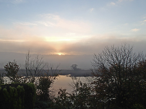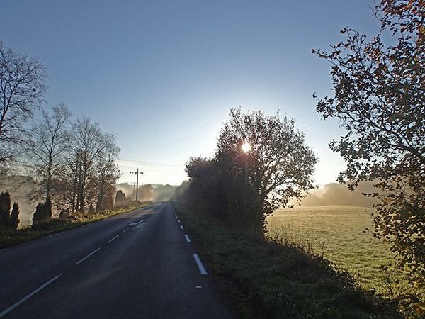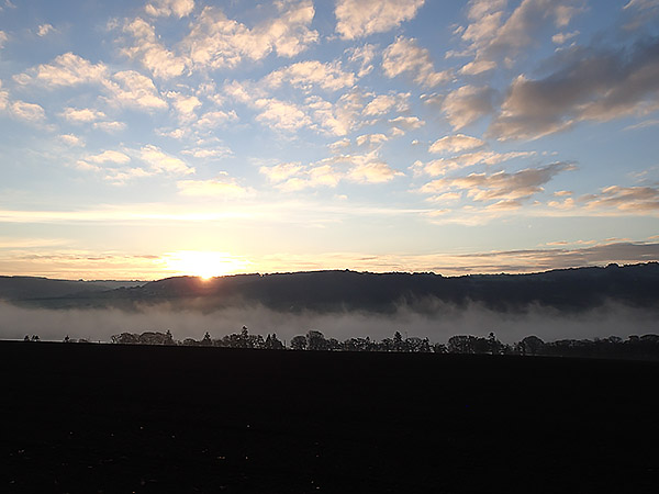La lumière au-dessus de la vallée de l’Elorn, encore dans la brume, est splendide.