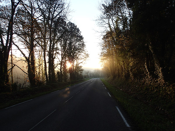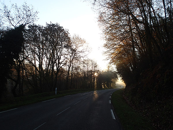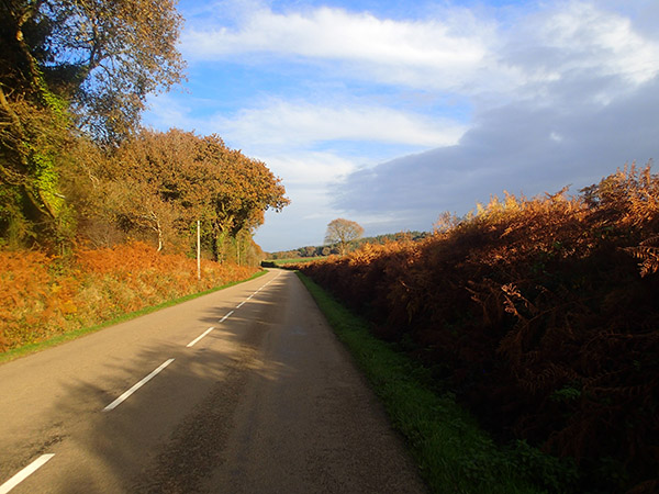 Avant Le Queff, les passages à l’ombre sont vraiment frisquets, mais le soleil qui filtre entre les arbres met en valeur les dernières couleurs de l’automne.